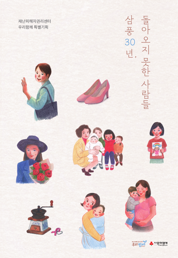 재난피해자권리센터 우리함께가 기획한 <삼풍 30년, 돌아오지 못한 사람들> 카드뉴스 시리즈는 삼풍백화점 붕괴 참사 유가족 분들의 인터뷰를 바탕으로 제작되었습니다. 이 시리즈는 30년이 지나서야 비로소 세상에 전해진 피해자들의 목소리를 기록으로 남겨, 전해지지 않았던 삼풍 피해자들의 외로운 싸움과 우리에게 남겨진 과제를 드러내기 위해 만들어졌습니다. 미수습자 수습과 애도, 기억은 재난피해자의 권리이자 우리 사회가 함께 보장해야 할 책무이기도 합니다. 카드뉴스를 읽으며 슬픔을 넘어 ‘애도’가 어떻게 사회적 기억과 연결되고, 재발 방지를 위한 다짐으로 이어질 수 있는지 함께 고민해 주시면 좋겠습니다.