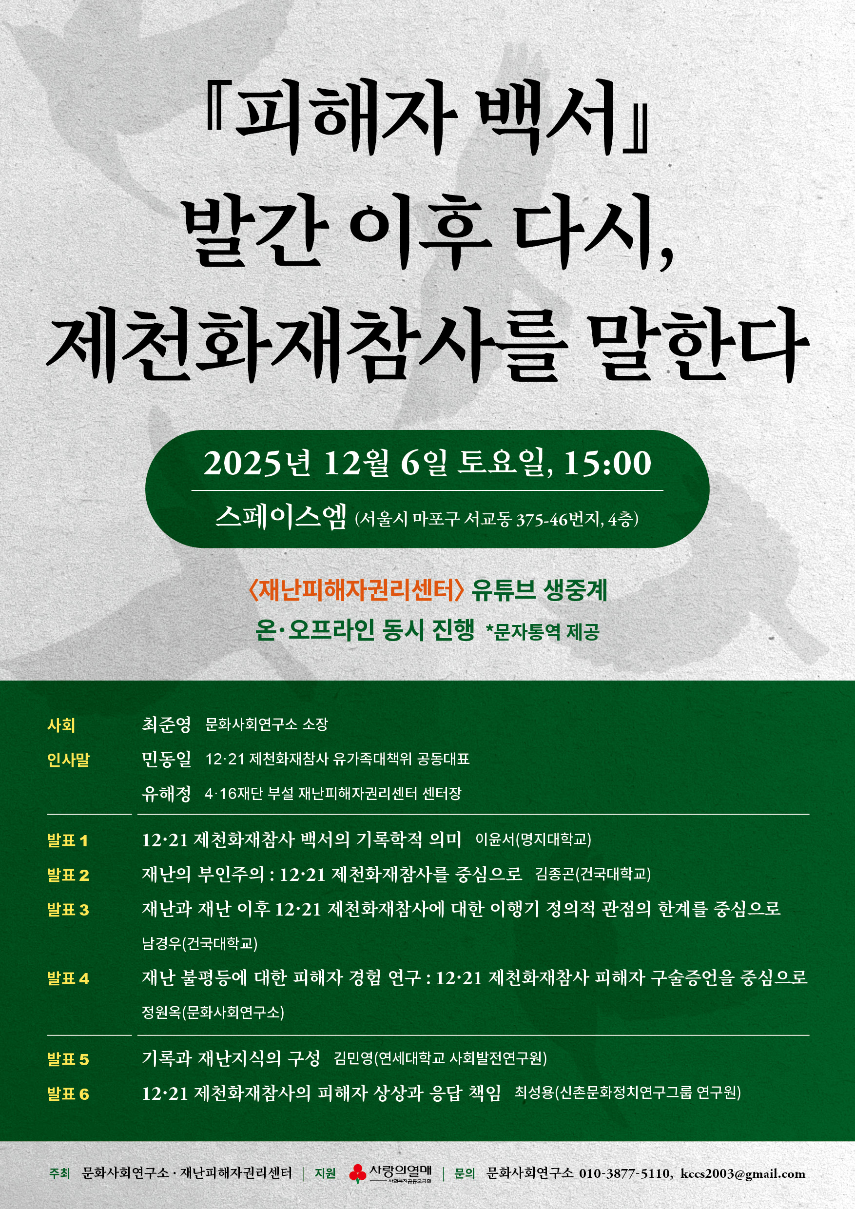 - 주최: 문화사회연구소, 재난피해자권리센터