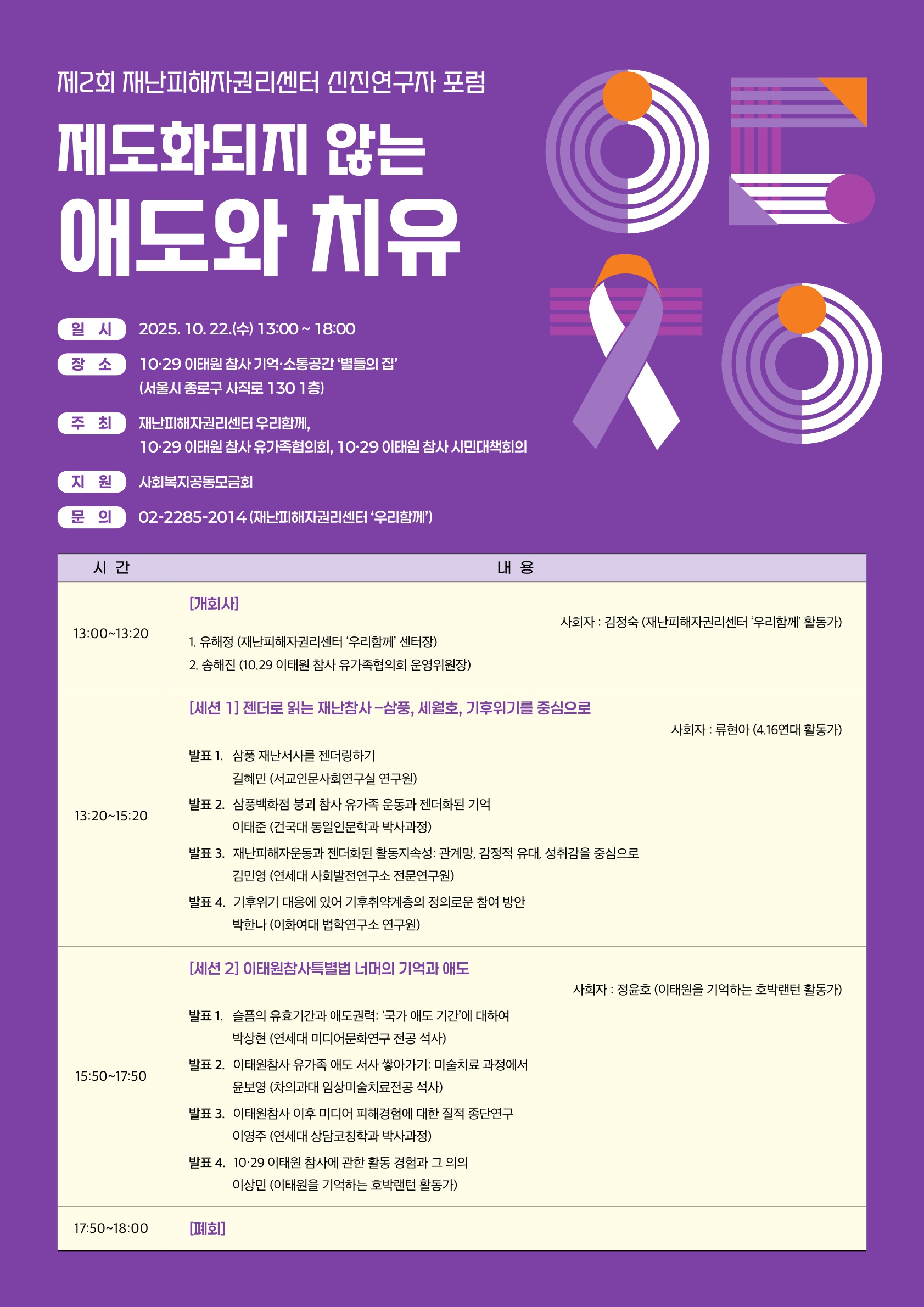 📌제2회 재난피해자권리센터 신진연구자 포럼: 제도화되지 않는 애도와 치유